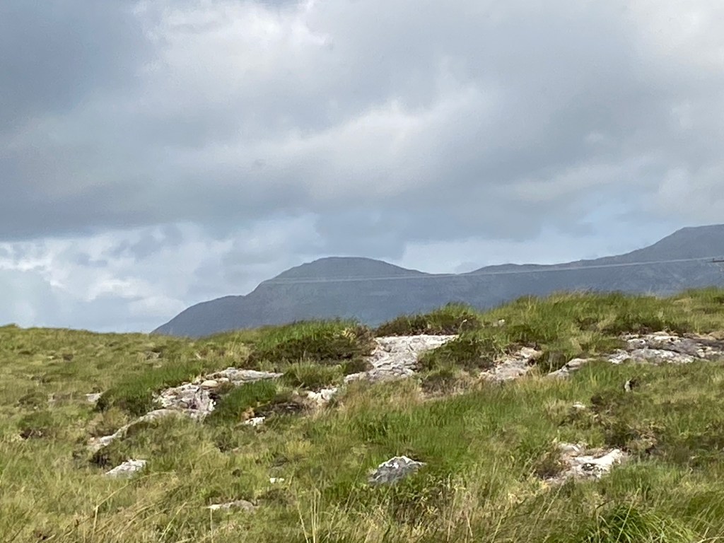 When we set off this morning we headed for the nearby town of Cliffden, it looked a very nice place as we drove around several times trying to park, sadly we couldn’t find a space suitable for Homer so we had to drive on. The scenery is changing all the time, today less lakes, flatter, lots of peat bogs and always with the mountains in the distance.