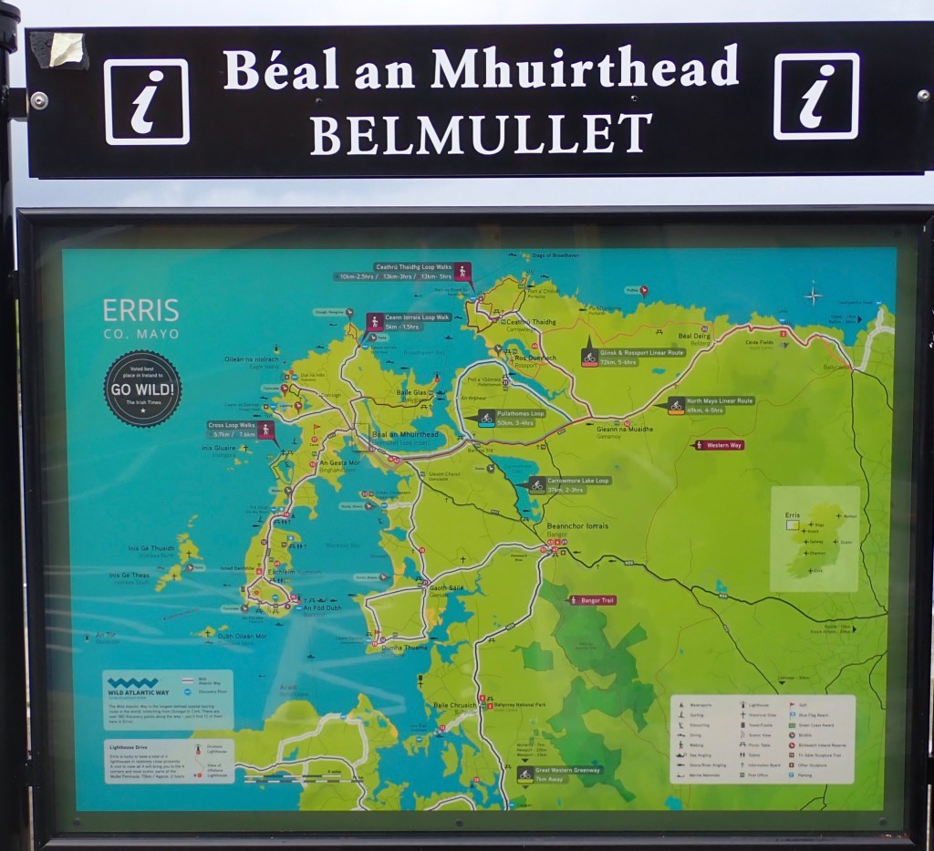 We are spending tonight at the quay in Belmullet with views of fishing boats. It’s quite a small town on the NW of Ireland.