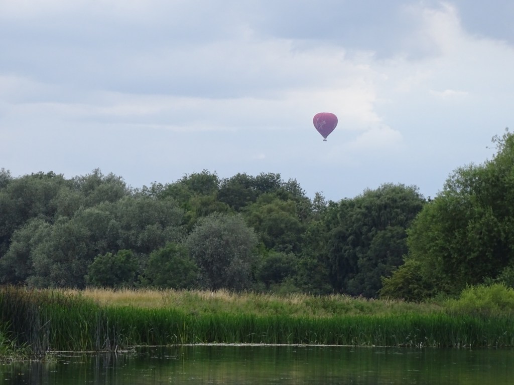 As we cruised quietly along in the electric powered boat we could see a hot air balloon in the distance.