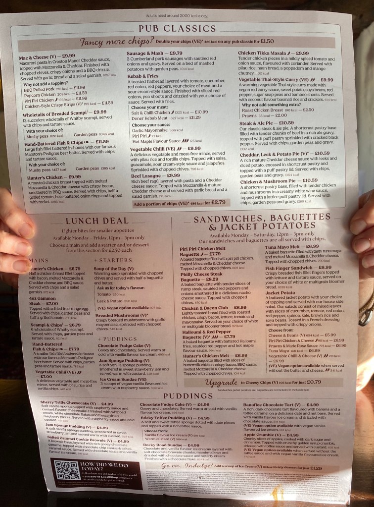 The menu was extensive and it took a while to select our meal, we were both pleased with our choice and the portions were large enough to deter us from having a dessert.
