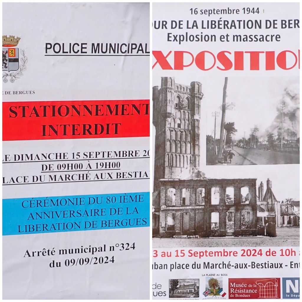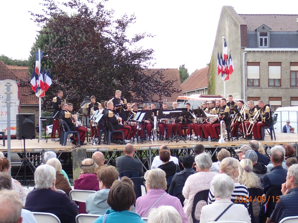 When we walked into the town we found they were celebrating the 80th year of being liberated by Canadian forces in 1944. There was a display of photographs of local people of the time, images of the damage caused by the fighting etc. In the square was a brass band which were playing some marvellous music.