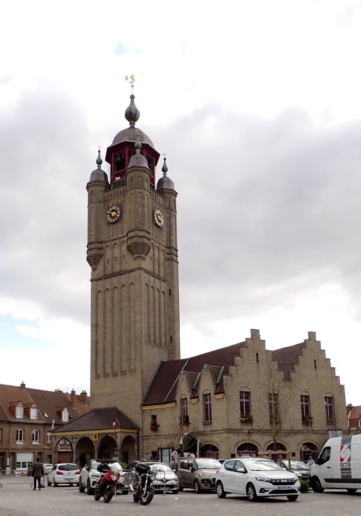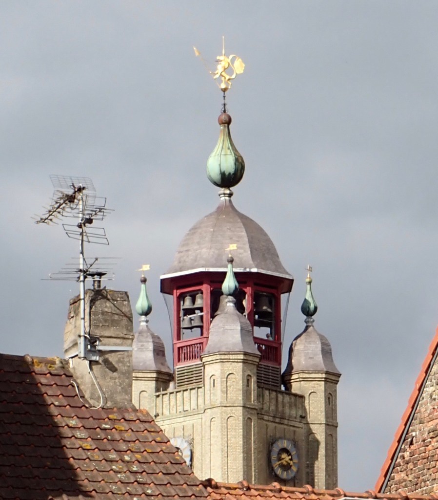 We are staying tonight at a free aire at the town of Bergues, we have stayed here at least three times before, but it was the first time for Alison and Peter. Bergues is a commune in the Nord department of Northern France 9k south of Dunkirk and 15 K from the Belgian border. The town has an amazing belfry with a Carillon of 50 bells which ring every 15 minutes during the day. ( Interrupts conversation quite regularly). The town ramparts are 5.3 k long partly medieval and partly restored at a later date.