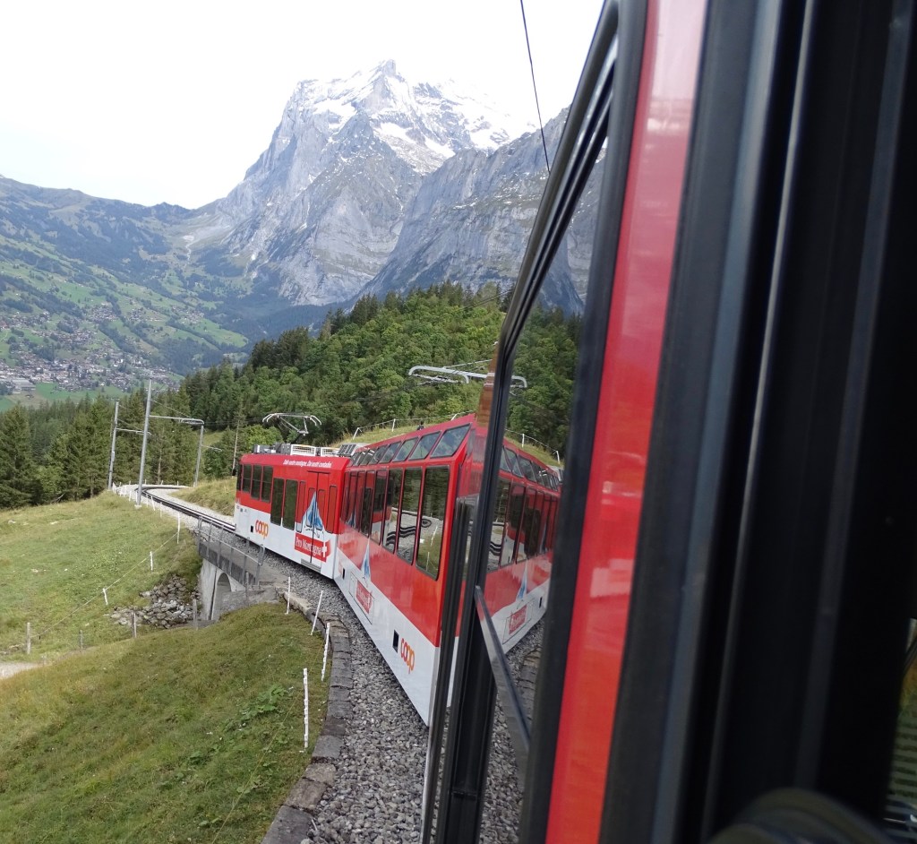 We travelled up to the first level on the worlds most modern tri cable gondola that whizzes you up in just 15 minutes, giving wonderful views , and takes you past the North Face of the Eiger.