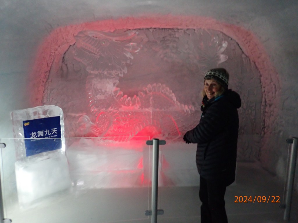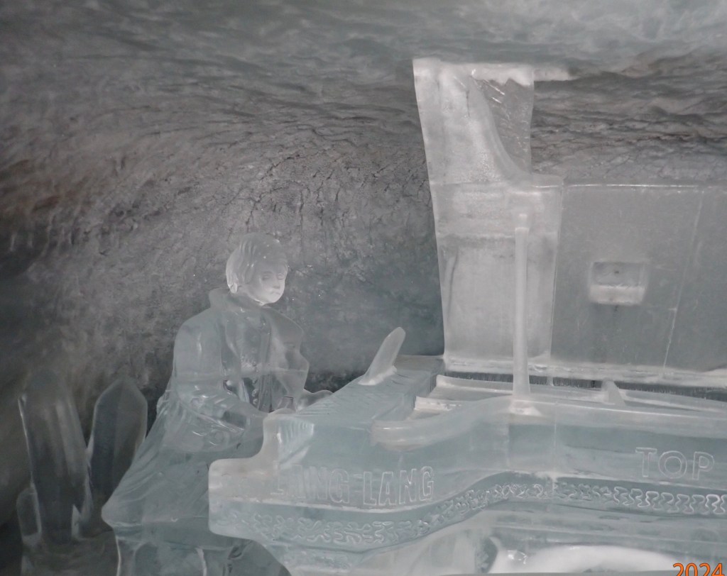 When you arrive at the terminal you are directed to walk through another internal tunnel with a variety of exhibits, you also walk through an ice palace created in the 1930’s. It has to be constantly recut as the warmth generated by thousands of visitors means that the labyrinth has to be cooled to minus three degrees, there are ice sculptures but sadly my photos didn’t do them justice.