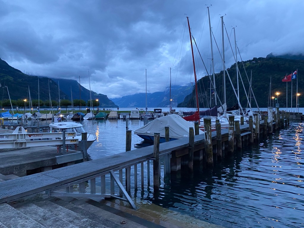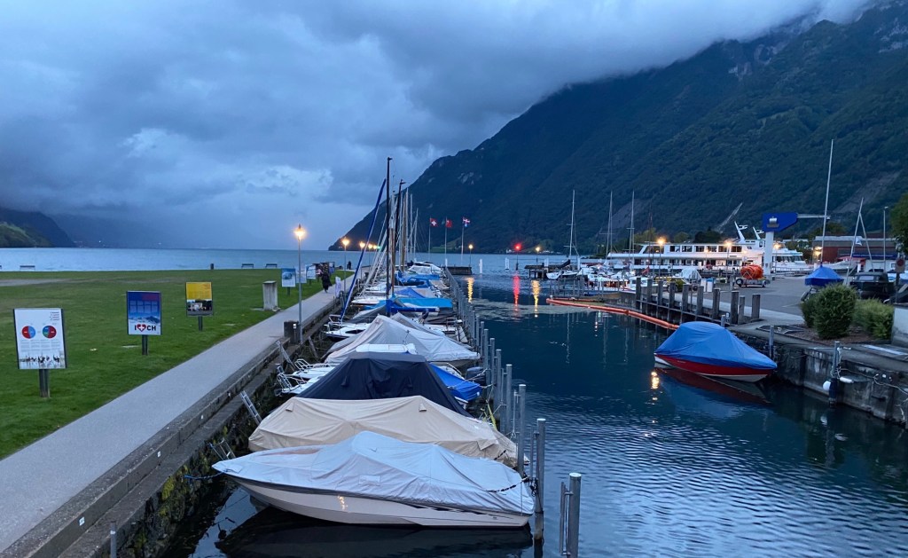 We drove a short distance from Schwyz to an aire where we are staying tonight, after tea we all went for a walk down to the edge of Lake Lucerne and as we we were looking at the marina it was evident a storm was rapidly approaching us so we beat a hasty retreat and as we got back it began to rain heavily.