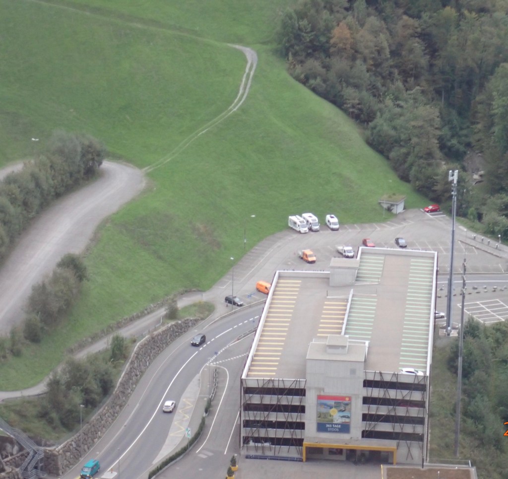 Today we drove an interesting journey, we know that some Swiss cheese have holes in them but did you know their mountains do too. Well they are called “tunnels” and boy did we go through a lot today with the longest being 9km long, in Old Homer the headlights were about as good as two candles, thankfully this Homer has good headlights but to be fair most tunnels have good lighting, in one tunnel today the road split and we went off down a different tunnel on our right.