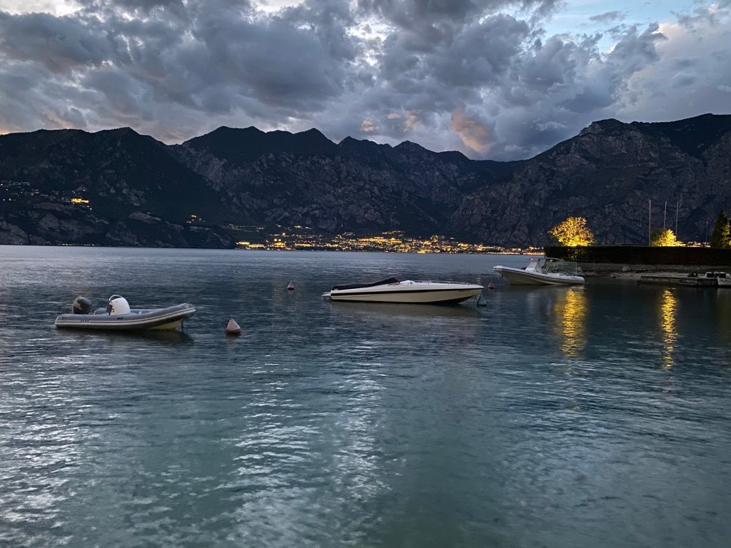After an evening meal we wandered down to Lake Garda and enjoyed the lights shining across the water.