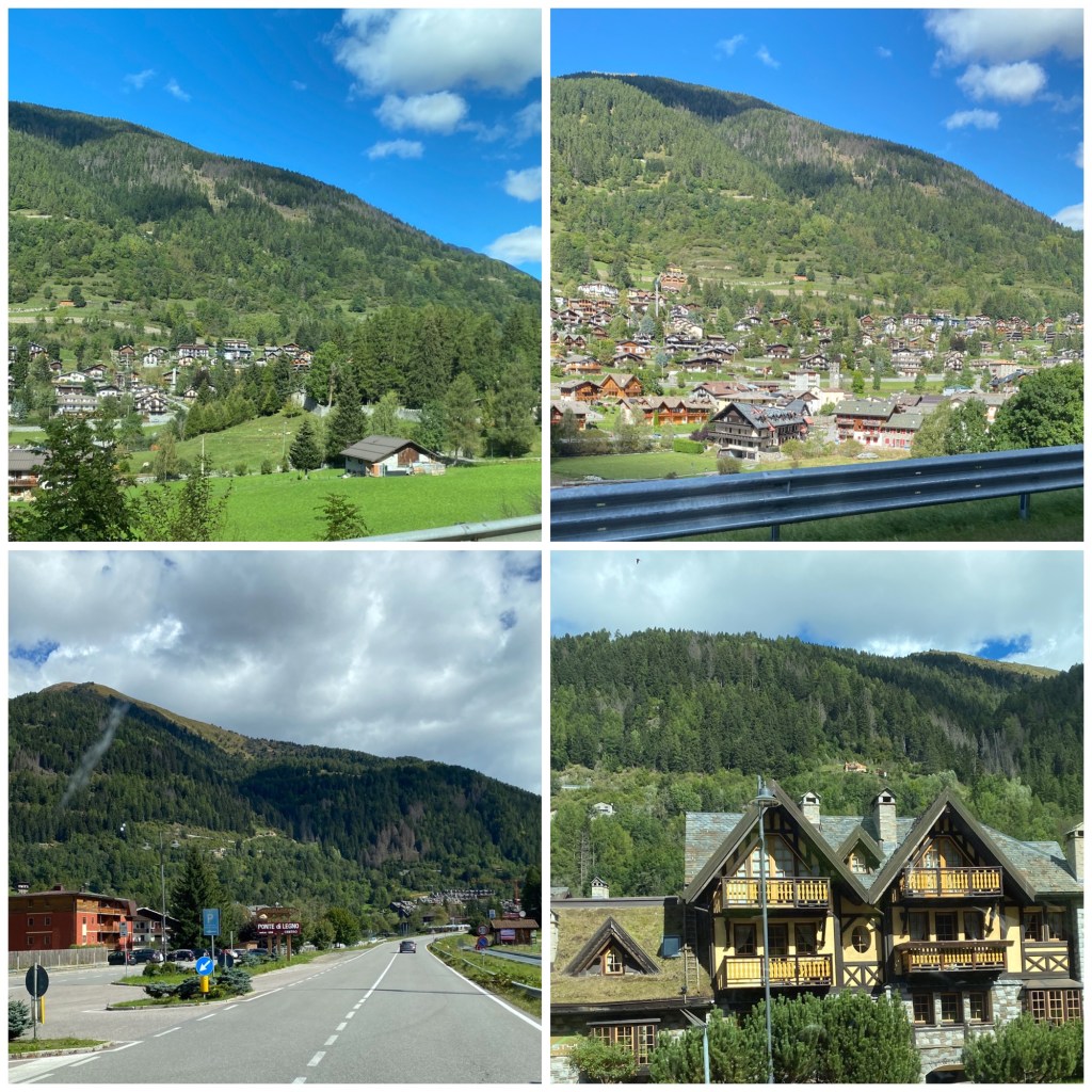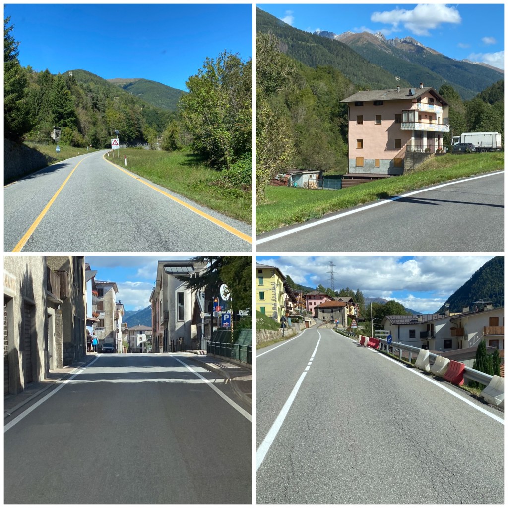 We decided today not to use the autostrada and it’s numerous tunnels as I’m beginning to feel like a mole occasionally emerging blinking in the sunlight. Instead we headed north to the top of the lake and then east. It wasn’t a swift route, many of the roads have 30kph and 50kph speed limits and a fair few speed cameras. The roads we took went through at least two mountain ranges and on three occasions we climbed on roads that resembled a corkscrew with hairpin bend after hairpin bend, exciting but tiring. We passed through mountain ski resorts that were closed waiting for the snow to arrive.