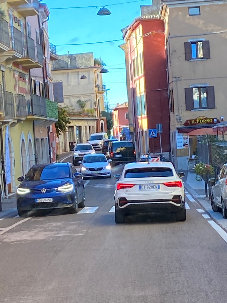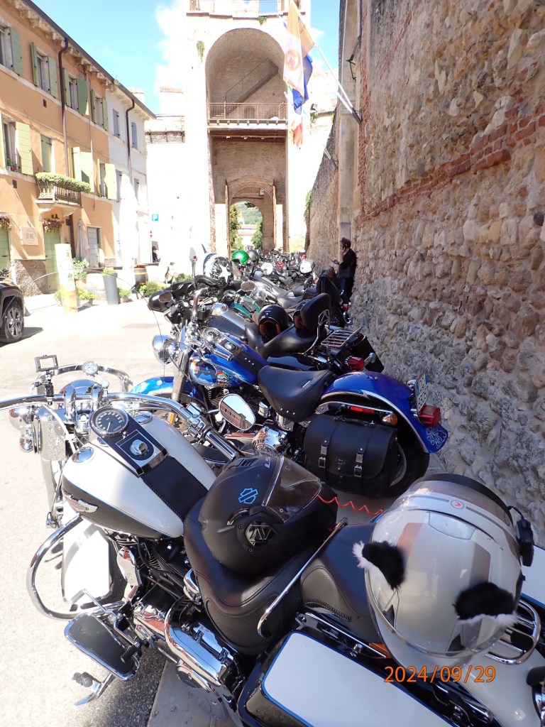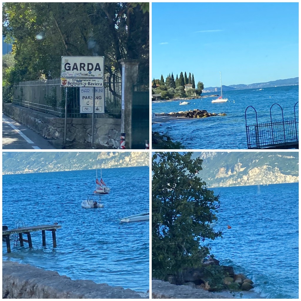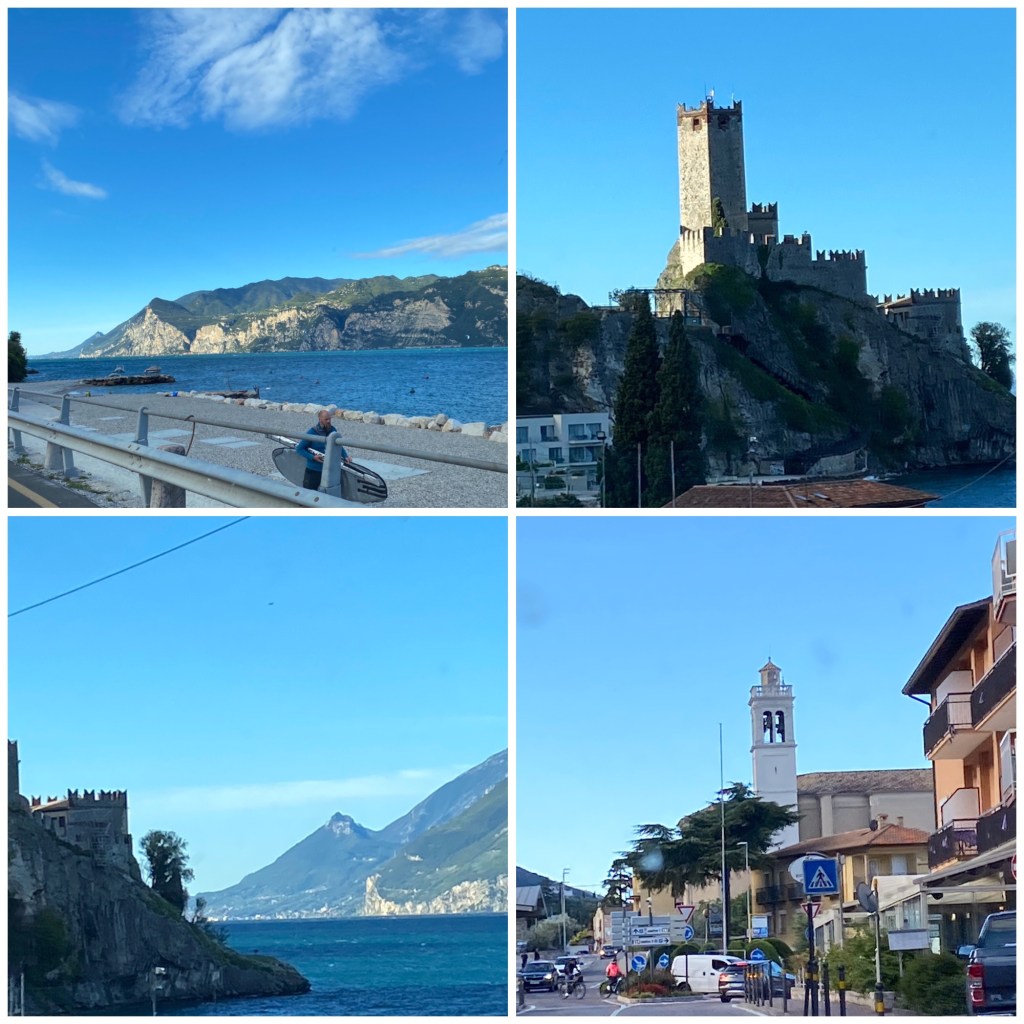 Today we drove down most of the eastern side of Lake Garda, slow going.Thankfully the roads weren’t as narrow as some we have endured over the past three days, Michelle took some photos as we drove along as again stopping regularly to take photos wasn’t easy. Today being sunny and a Sunday everyone was heading for the lake, there were scooter clubs, motorbike clubs, vintage car clubs along with hundreds of day trippers heading towards the lake. Thankfully after a while we cleared the lake and as we were driving away our side of the road became much quieter.