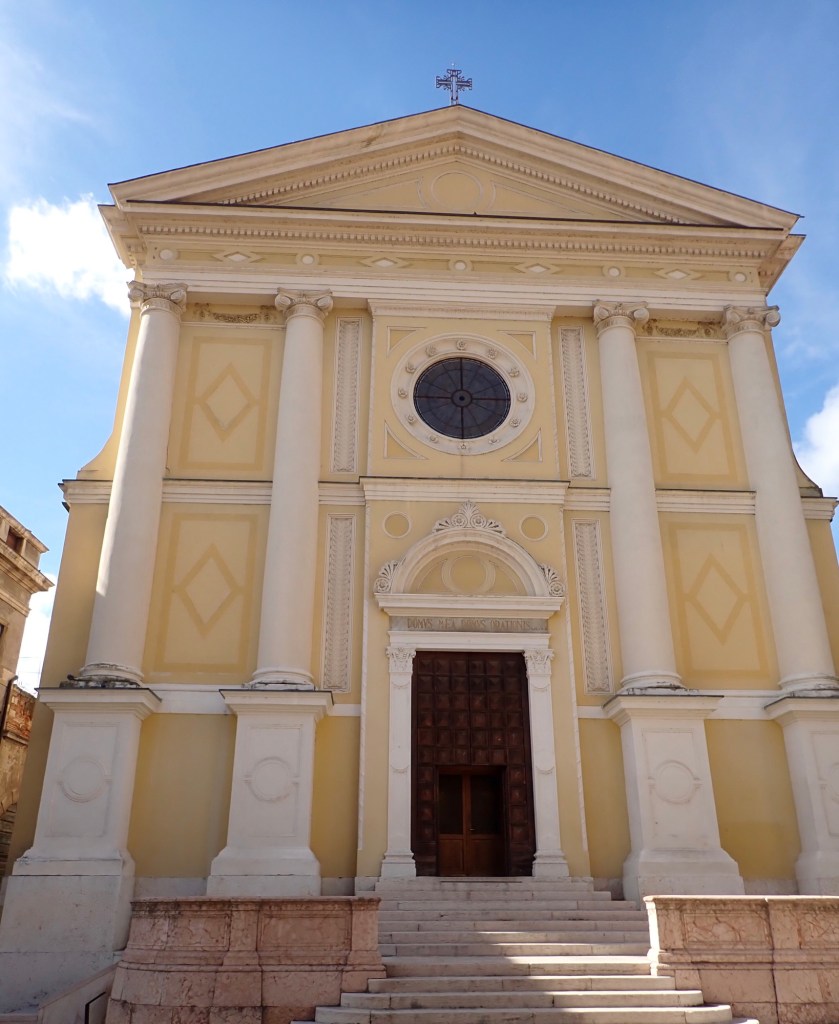 The arch priest church of Soave was built in 1744 on the site of where in 1303 a primitive church was built., it was enlarged in 1883. The entrance steps are marble, it has a single nave with side alters of Baroque style rich in marble with valuable paintings. There are paintings throughout the church and there is a large fresco on the ceiling of the nave.