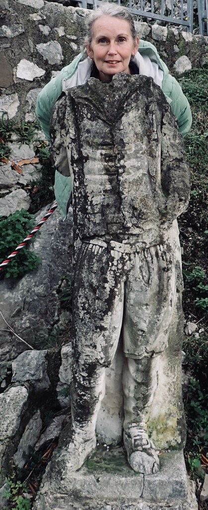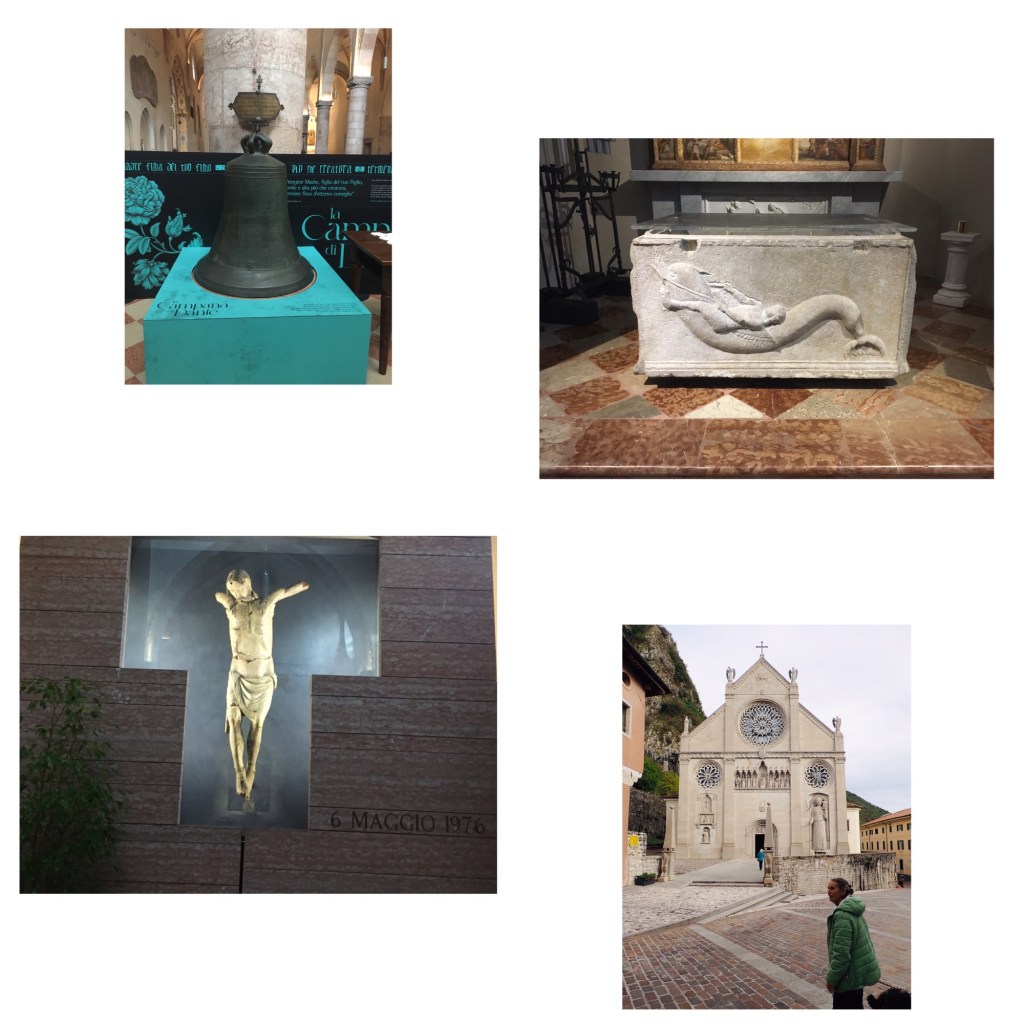 Below the castle is the Cathedral of Santa Maria Assunta which has been built up against the cliffs of Mount Glemine and dates back to the 13th and 14th century built on the site of an older church. It too was severely damaged by the earthquake and where possible it has been painstakingly restored as the original. Michelle went inside ( whilst I sat outside with Layla 😊) and was impressed by the interior she took photos amongst which were three of items damaged in the earthquake.