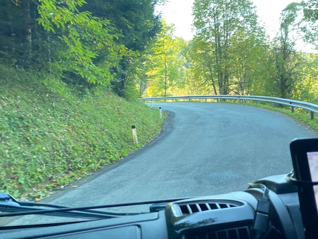 We had planned to do a short trip today but as I said things changed and we headed off up the road that took us into Austria, again a challenging road, not particularly narrow but it climbed steeply and I was using second and third gear regularly, we eventually plateaued out at the top.