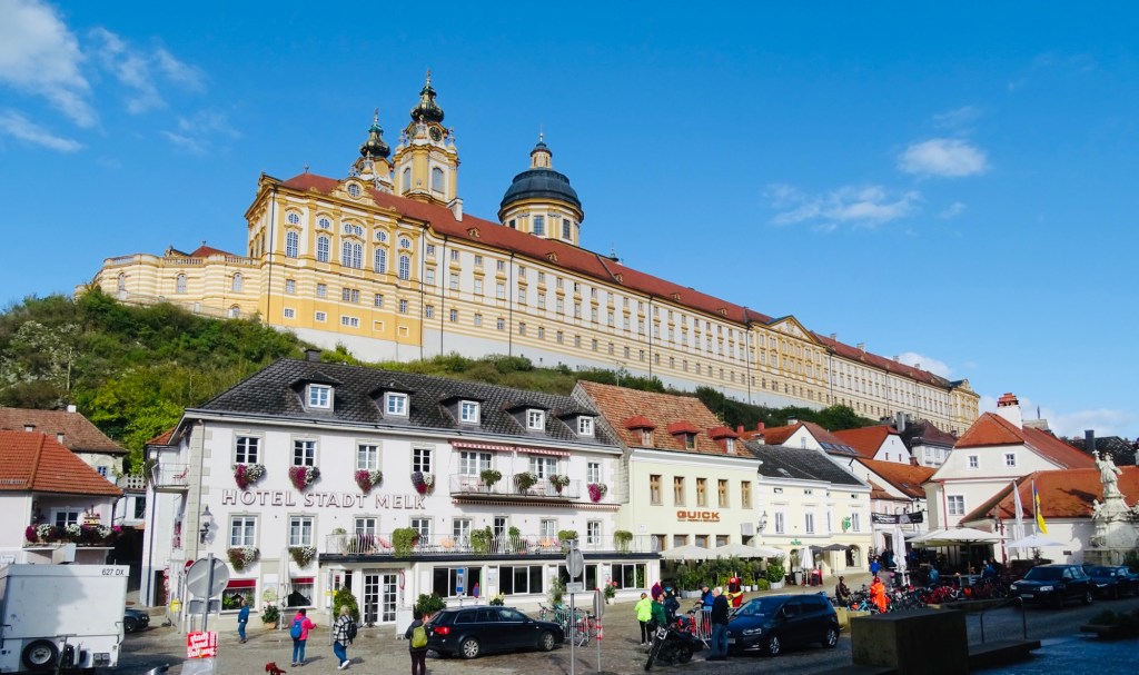 Melk is an Austrian town on the river Danube west of Vienna. It’s known for the 11th century Melk Abbey a vast monastery built high above the town. Gold statuary adorns its domed Abbey Church.