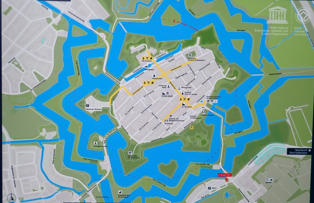 After lunch we drove north west to Naarden which is a Dutch fortified town and is the best preserved fortified town in the Netherlands. It is said to be unique in Europe because of its star shape, it boasts double ramparts, gatehouses and bastions, however we have been to two other star shaped fortifications.