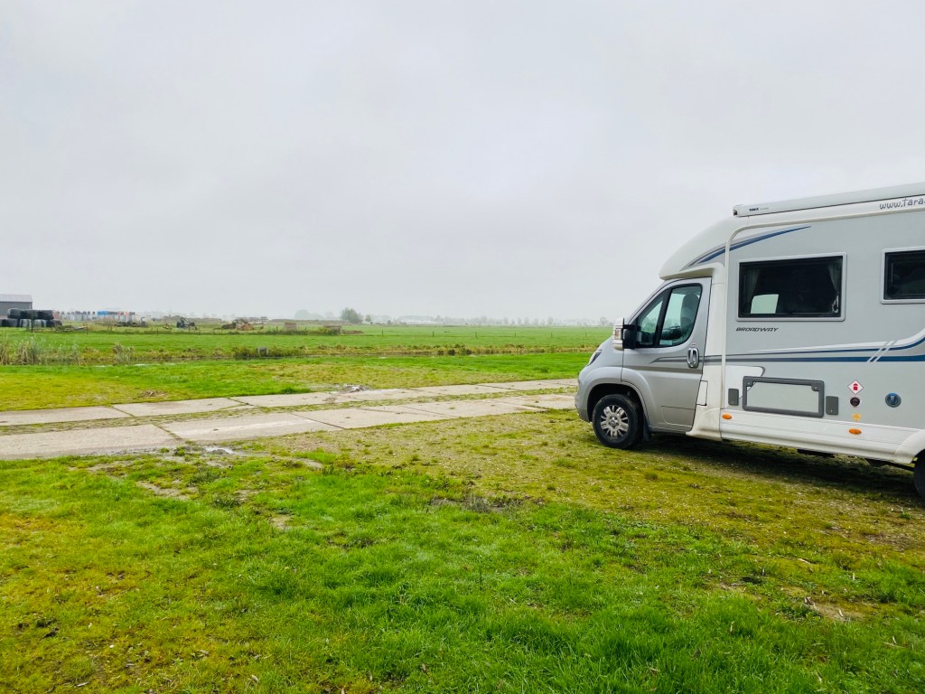 There is a dedicated motorhome stopover in Gouda at Klein America with full services, unfortunately when we arrived they were digging up the surface and you couldn’t enter. There was a large car park adjacent but it was very busy and quite noisy so we looked for an alternative and are stopping on this camperplaats which is on a dairy farm as the odd whiff informs you.