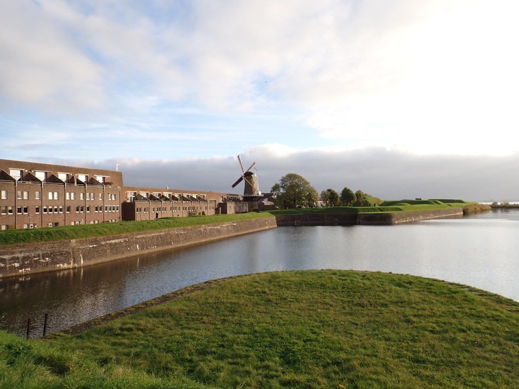 Hellevoitsluis is located on the Haringvliet ( an estuary to the North Sea) with a beach and dunes close by and is a fortified town with a fortress built in the 17th century. It’s port has a large dry dock and a sea lock to control water levels.