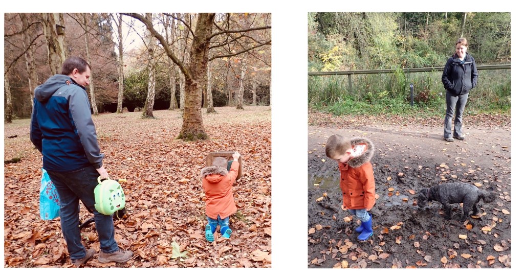 The area of the woods isn’t huge but the paths wound round through woodland, around the lake and across a grassy meadow along with a picnic stop for the boys we were there for a few hours.