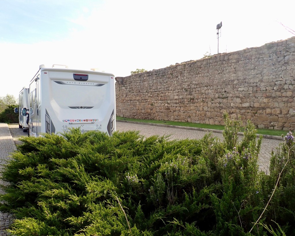We are parked on a quiet road (apart from the cobbled surface) against the walls of the town a few metres away from one of the entrance archways.