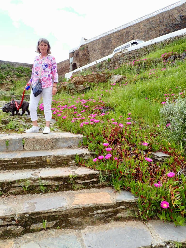 We had intended staying two nights in Evora but after a long walk around we had seen everything we could without leaving Layla in the van, also where we were stopping didn’t have the facilities to let her have a run off the lead, she was banned from the local park because peacocks/hens roamed wild. So Alison and Peter kindly agreed to move on today and we drove a short distance to Monsaraz.