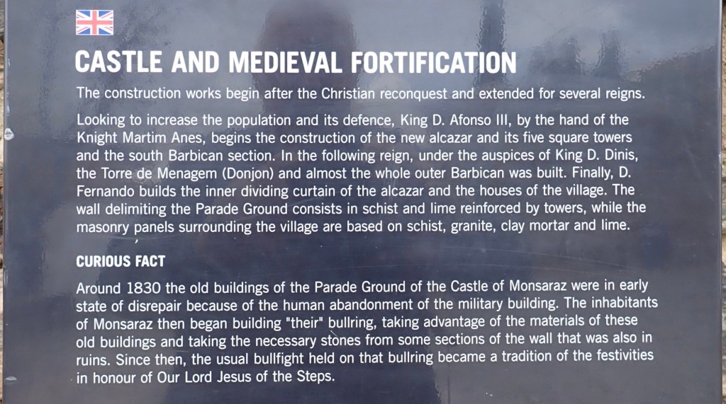 Monsaraz is a tiny medieval walled town perched above the River Guadiana on the frontier with Spain. It has had a turbulent history with ownership passing from Portugal, Spain, Knights Templar and for a while by the English troops of the Earl of Cambridge. The main street leads to the castle built in the 13th century as a border defence against Spain.