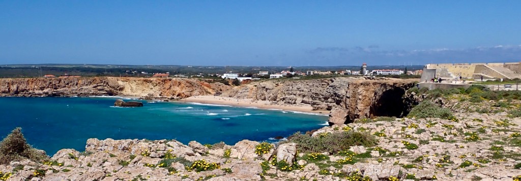 We drove a short distance from there to The Fortaleza Sagres which is located at the southern tip of the Sagre Peninsular and this uniquely designed fort protected the town from raiders from North Africa. The fort only has a wall on one side as the other three sides consist of 60m vertical cliffs, there were strategically placed gun points looking out to sea from where cannons could fire out at ships. It was this fort that Henry the Navigator devised his 15c expeditions around the west coast of Africa.