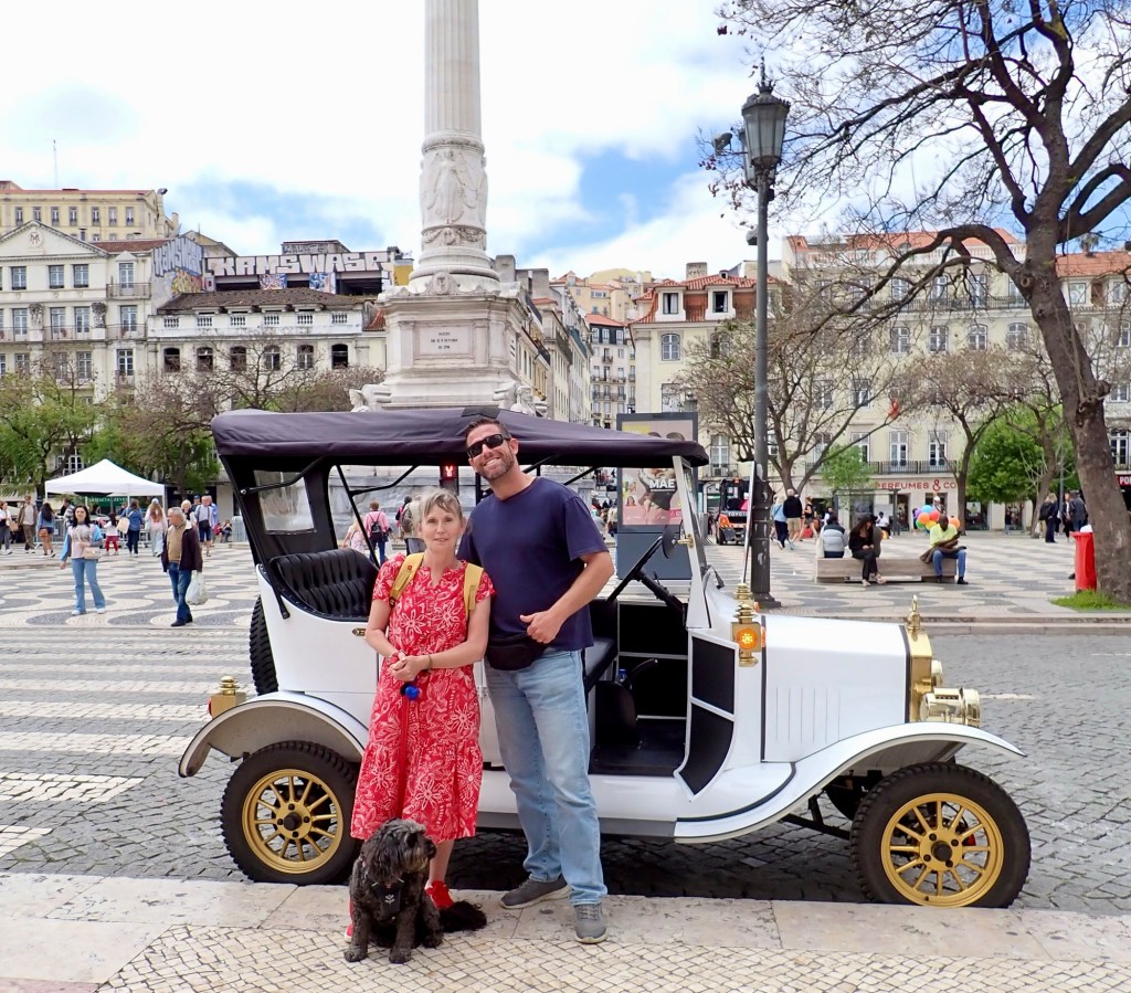 We eventually emerged in Rossio Square with a monument to Dom Pedro 1V where we were approached by a pleasant young man touting for business to take a site seeing ride in his Tuk Tuk, and much to our surprise he agreed to take Layla and did so giving her much fuss.