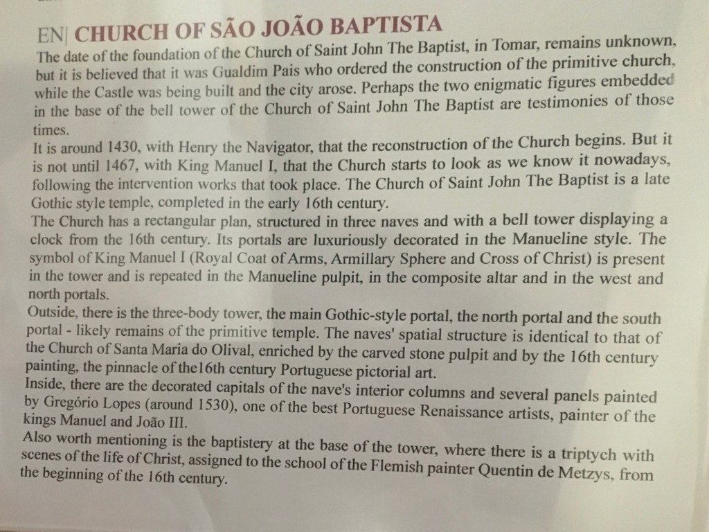 In the centre of the town is the Church of Sao Joao Baptisa ( St John the Baptist) Michelle went for a wander around inside and took some photos.