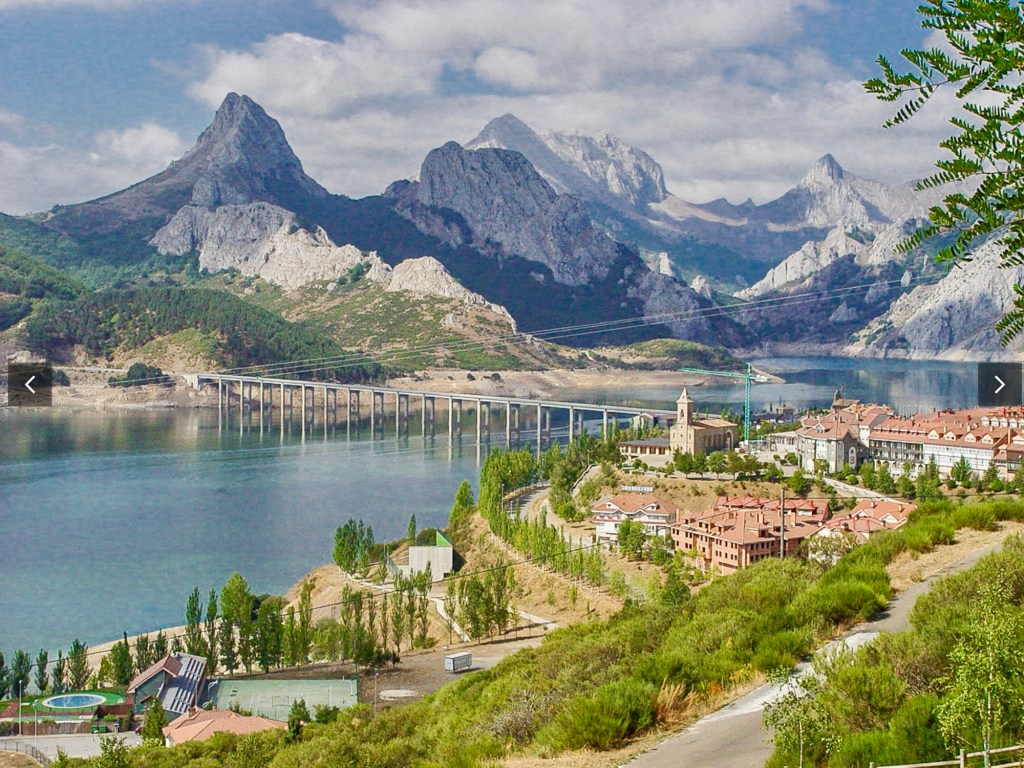 A dam and reservoir (Embalse de Riano) was created in the 1980’s for flood control and generation of hydro electric power. The original village and six others in the region had to be relocated to New Riano as a replacement. The old Riano is underneath the new bridge.