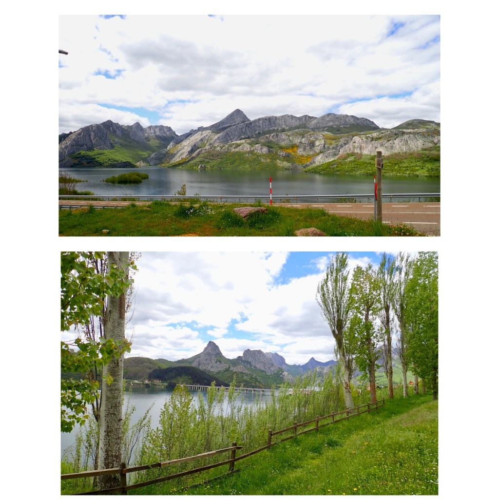 We are staying here tonight in Riano on a free aire that overlooks the reservoir , we have been here before in August 2018 on an extremely hot day we drove through, the waters were a deep blue and we commented we would like to come back one day and now we have.