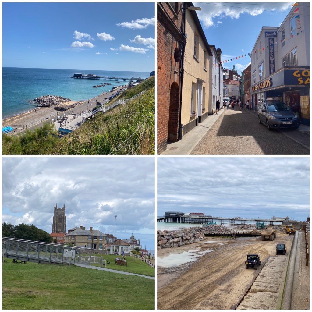 On Wednesday we drove up the coast to Cromer, having been there in the past, in fact on New Year’s Day along with friends Alison and Peter we knew there was only one car park we could get the motorhome on. Thankfully it’s close to town situated high up on the headland and has an enormous capacity, it is situated on Runton Road. We managed to get spaces quite close to the entrance.