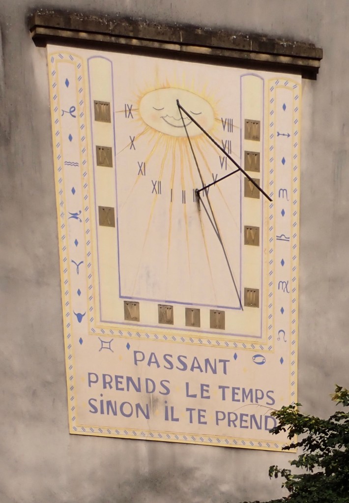 The site of expensive beer🍺😊Wall art next to a school.Sun dial on the side of a building. translation “Passerby take your time otherwise it will take you.”A wonderful macaroon/ cake shop.