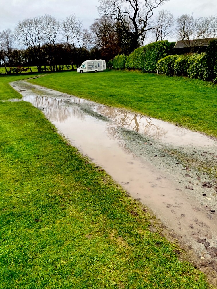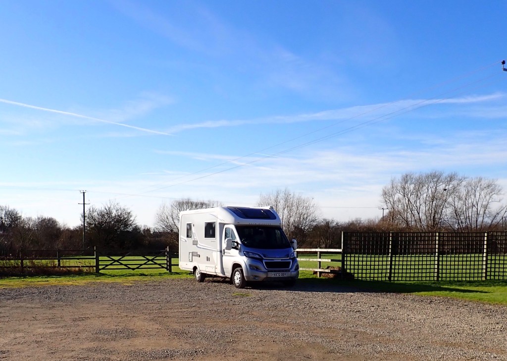 We are parked on a quiet road (apart from the cobbled surface) against the walls of the town a few metres away from one of the entrance archways.