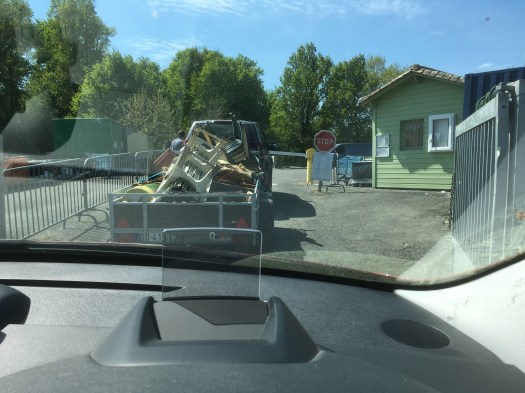 Is it different in France, well yes, firstly you have to be allowed through the barrier, after some time the operative will approach your car and demand to see what you have loaded within. This is greeted with a look of horror, much pursing of the lips, shaking of the head, a shrug of shoulders and a long pffffff, before deigning to open the barrier and point you in the direction of the correct skip, woe betide you if you have a mixture of items this can cause a melt down.